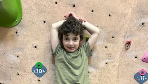 Turns out that rock climbing, particularly at a gym in our area, can be a really great activity for neurodivergent kids. And the kid being featured happens to be my own.